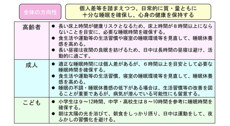 まず睡眠衛生の話に先立って睡眠時間について、一律に8時間睡眠が必要と考えられておられる方も多い印象をうけます。まずは、生理的に睡眠時間や睡眠の質は世代によって変化していくものであるということをお話ししたいと思います。