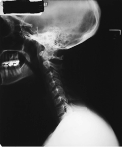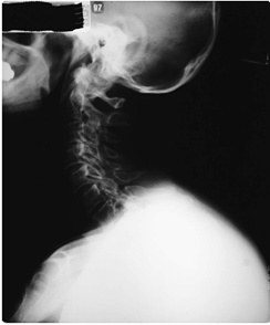 正常なコブ角を持つ人の頸椎レントゲン 線維筋痛症患者さんの頸椎レントゲン